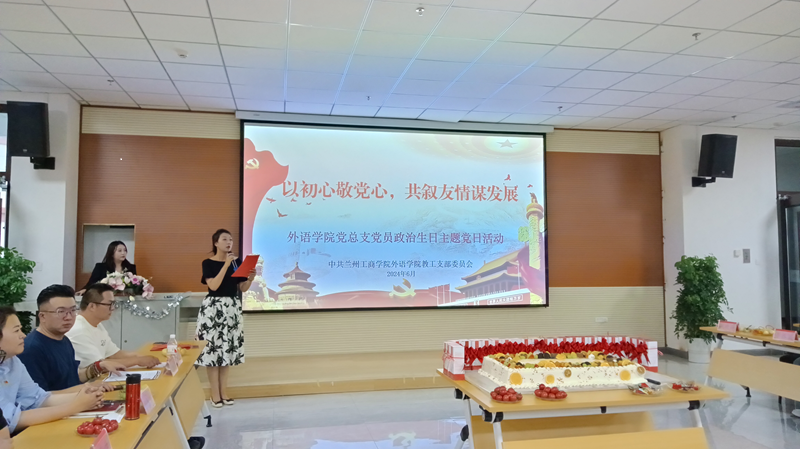 为扎实推进党纪学习教育走深走实,强化党员身份意识,牢记党员初心使命,筑牢党员纪律意识,使党员始终保持清正廉洁的政治本色,充分发挥党员示范引领作用,外语学院于2024年6月20日在综合教学楼C区503教室开展以“不忘初心、牢记使命,永远跟党走”的“政治生日”主题党日活动。我院党总支书记张钰同志和教工支部书记权志成同志以及全体教工党员参加活动,“政治生日”是每位共产党员入党的日子。将“政治生日”与“党纪学习”结合,就是引导党员时刻牢记党员身份,强化党性修养和纪律意识。