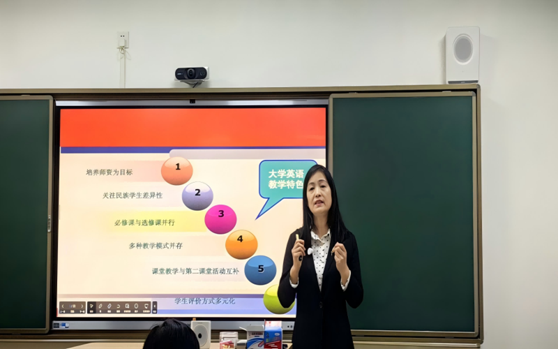 交流会上,俞婷教授介绍了西北师范大学大学英语教学从传统模式到“技术融合、思政育人”的转型路径,并结合赛教融合经验,阐释“以学生为中心、AI赋能、国际视野与家国情怀并重”的教学理念与体系。