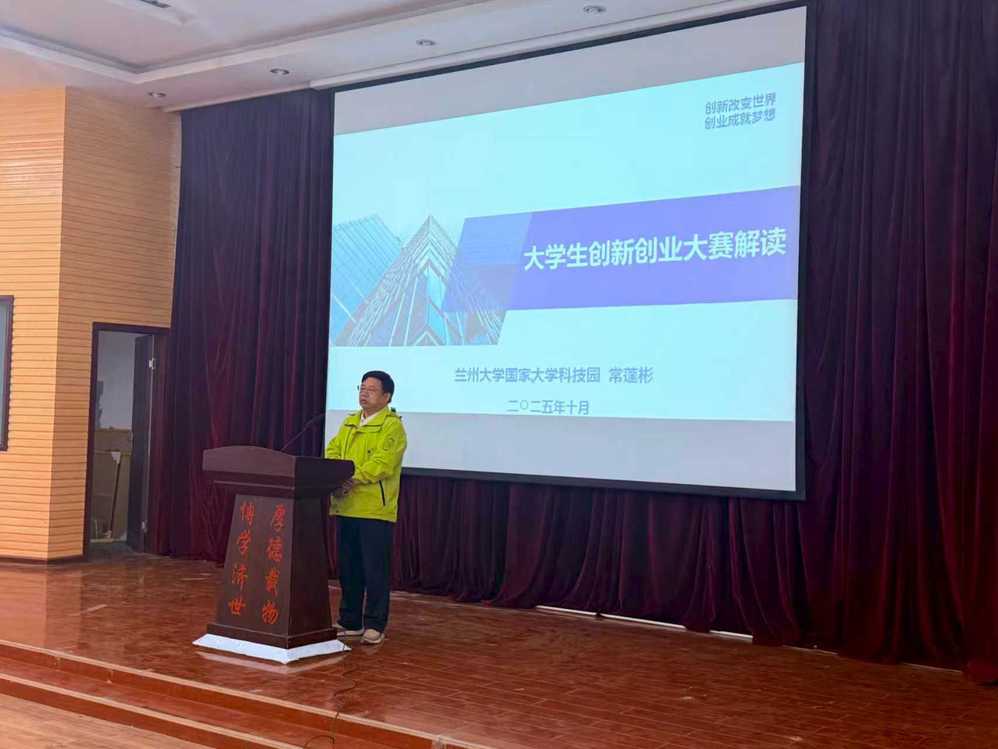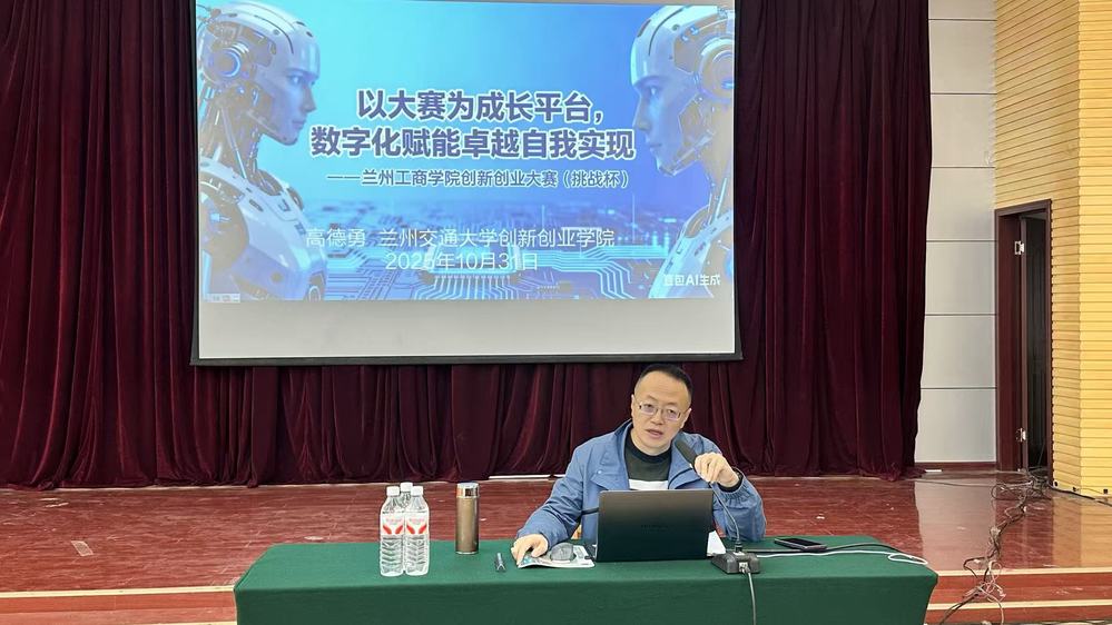 11月2日上午,兰州交通大学创新创业学院院长高德勇老师,他以“大赛为成长平台,数字化赋能卓越自我实现”为核心主题展开分享。高院长结合自身多年指导赛事与高校创新创业教育的经验,从“赛事平台的成长价值”切入,强调创新创业大赛不仅是项目展示的舞台,更是学生提升综合能力、实现自我突破的重要载体;随后聚焦“数字化赋能”,通过拆解多个依托数字化技术实现项目升级的典型案例,详细讲解了如何运用大数据、人工智能等技术优化项目设计、提升运营效率,为学生打开了“数字化+创新创业”的新思路,也让大家明晰了借助技术力量增强项目竞争力的具体路径。