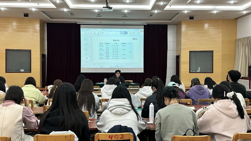 讲座中,刘老师围绕四级阅读核心技巧展开讲解,并结合“以考促学”的思路,建议同学们大三前通过四级、大四前攻克六级;若计划赴省会城市就业,本科阶段可冲刺专四高分(75分及以上),研究生阶段可备考专八,同时强调听力、阅读、写作、翻译四大能力的同步提升。