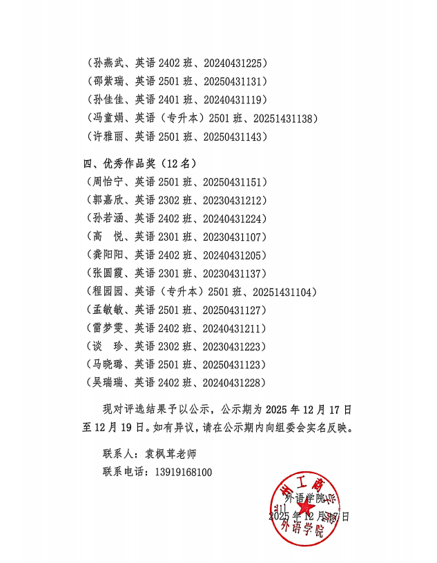 外语学院“笔尖旋律”英文书法大赛获奖名单公示