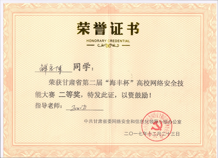 2017年12月23日,由中共甘肃省委网络安全和信息化领导小组办公室、甘肃省工业和信息化委员会、中国信息产业商会信息安全产业分会主办的甘肃省第二届“海丰杯”高校网络安全技能大赛在甘肃政法学院成功举办。