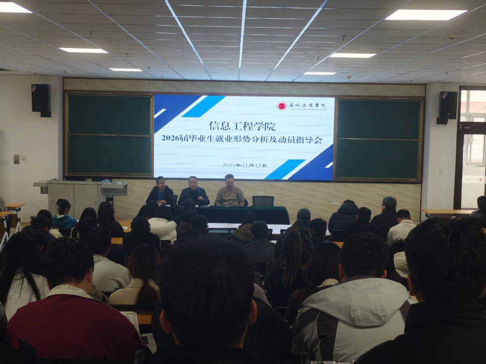 为进一步做好2026届毕业生就业指导工作,帮助学生深入了解当前就业形势,掌握求职技巧,提升就业竞争力。11月12日上午,信息工程学院在综合楼C501召开了2026届毕业生就业形势分析及动员指导大会,毕业班辅导员以及2026届全体毕业生参加了此次大会。大会由学院党委书记兼行政院长秦勇主讲。