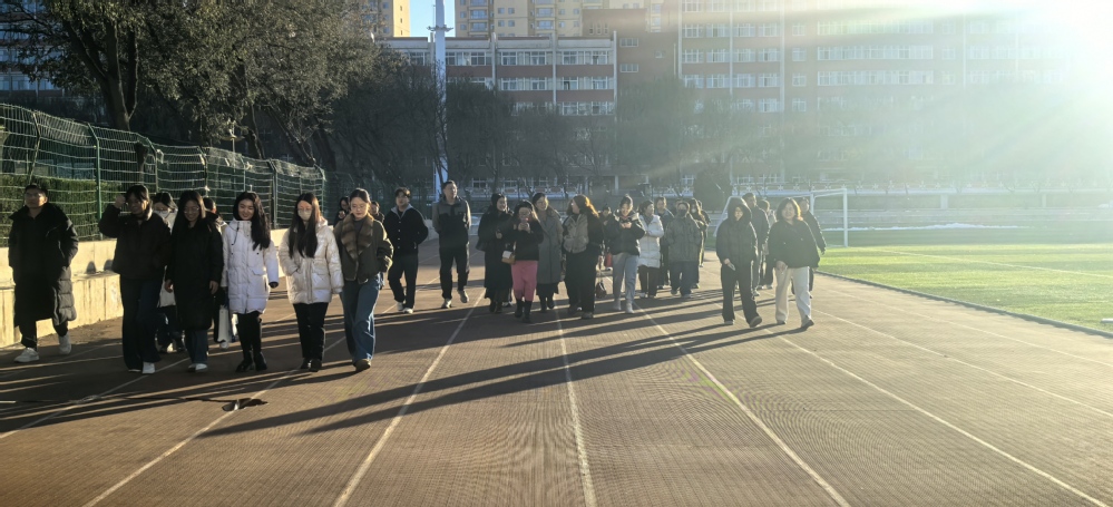 11 月 27 日下午,信息工程学院教工党支部与大学数学教学部党支部,在学校操场联合举行“联建聚合力 健步启新程 党建融专业 数信共发展”冬季健步走启动仪式。全体党员教师佩戴党徽一同参加,仪式由信息工程学院教工党支部书记韩如冰主持。