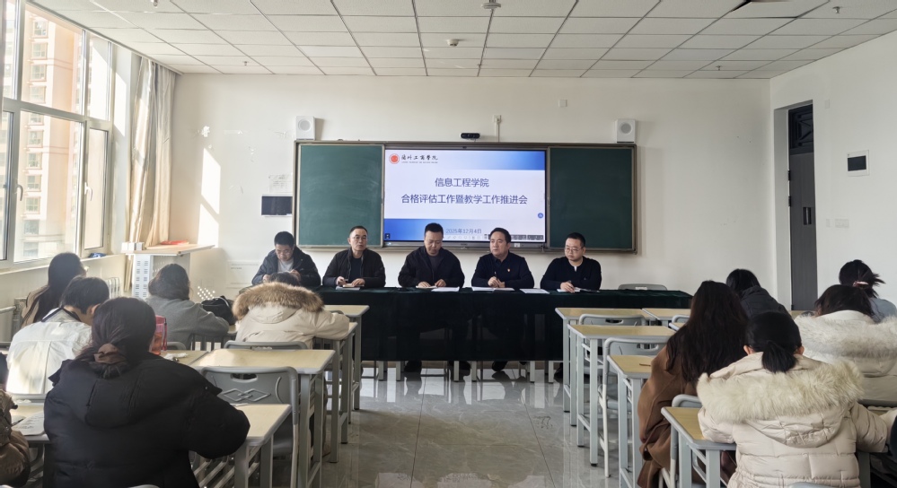 为全面推进合格评估工作落地见效,确保各项教学任务规范有序开展,12 月 4 日,信息工程学院在综合楼 A609会议室隆重召开 “合格评估工作与教学工作推进会”。会议由学院院长杨光主持,院领导班子成员、各教研室主任及相关教职工代表参会,共同梳理工作重点、细化责任分工,为学院高质量发展凝心聚力。