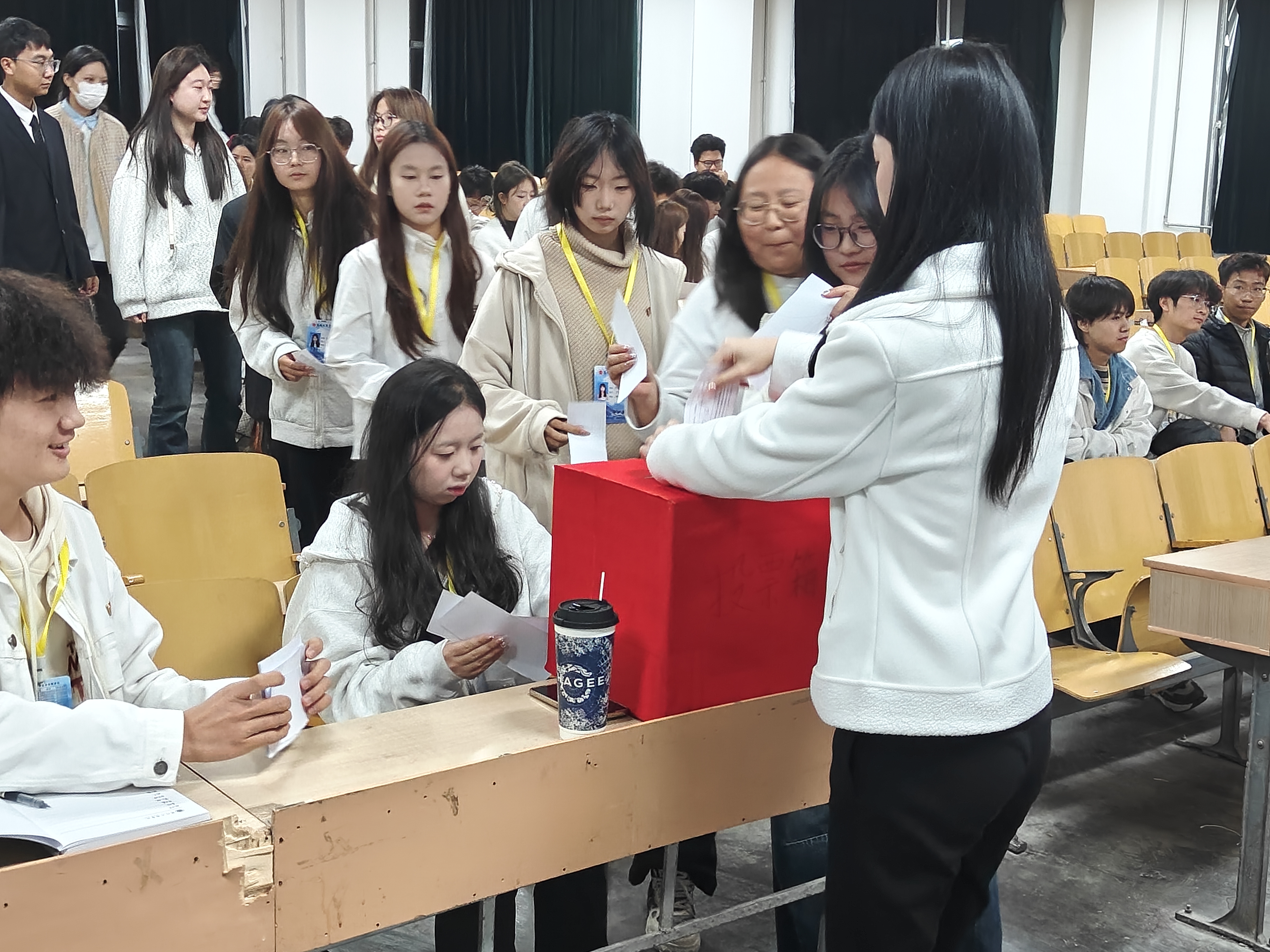 随后,大会成功选举并产生了新一届学生分会主席团成员以及学校学生代表大会的正式代表。赵浩军代表新一届学生分会主席团进行了发言。