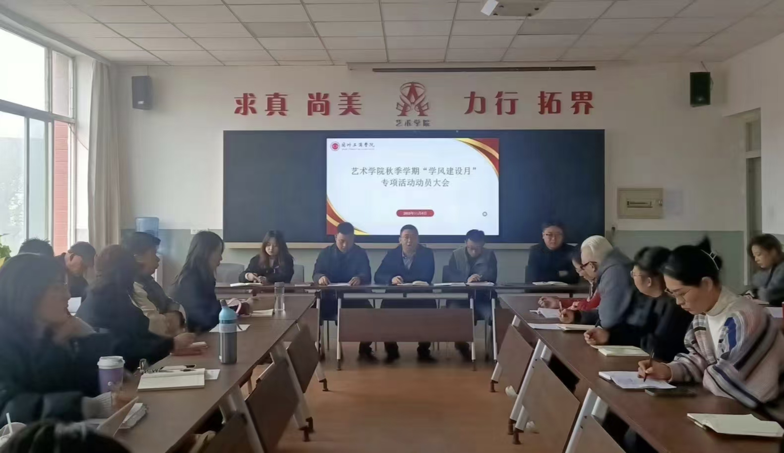 为深入贯彻学校关于学风建设的统一部署,落实《兰州工商学院关于进一步加强新时代学风建设的实施方案》及秋季学期“学风建设月”活动通知要求,2025年11月6日,艺术学院召开“好学善思・践行不辍・艺育新人”主题学风建设月专项动员大会。学院领导班子成员、全体教师、辅导员及学生代表参会,会议由学院党委书记毕征主持。